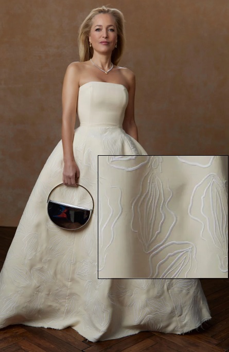 Meistriškai išsiuvinėti motyvai buvo ne graikiniai riešutai ir ne gėlės, o vulvos! Išorinė moters lytinių organų dalis vadinama vulva. „Suknelė tokia patogi“, – žavesio neslėpė Gillian Anderson ant raudonojo „Golden Globes“ kilimo. „Tai buvo bendradarbiavimas su manimi kuriant mano prekės ženklą ‘G Spot’“.