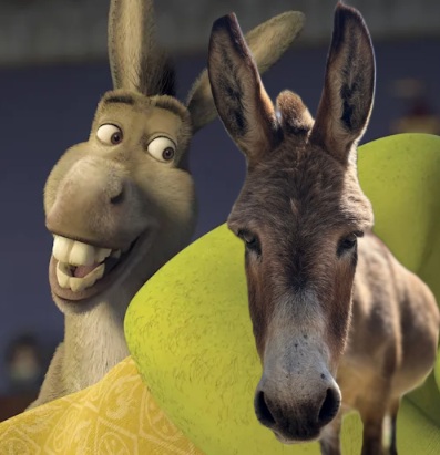Pasak Kiratli, vienas iš „DreamWorks“ animatorių gyvena netoli Palo Alto. Jo žmona žinojo, kad darbui, kuris buvo paskelbtas 2001 m., turi būti animuotas asilas. Ji išsiuntė savo vyrą ir kitus menininkus į zoologijos sodą, kur jie keletą valandų praleido su Perry.