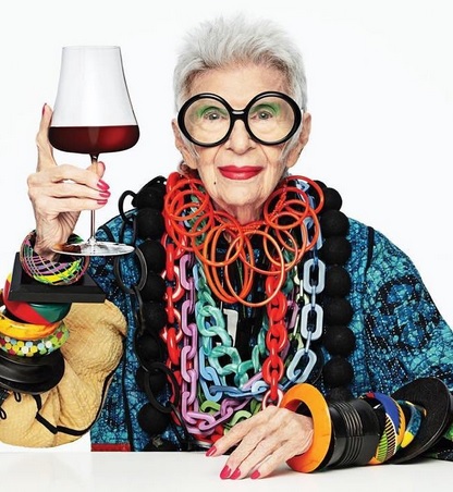IRIS APFEL 102-ĄJĮ GIMTADIENĮ ATŠVENTĖ SU RAUDONU VYNU