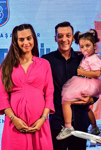 „Instagram“ matoma mama Amine pozuojanti šalia savo Mesut su rožine suknele. Šalia yra ir jų dukra Eda (2). Į akis krenta nemažas Amine pilvukas.