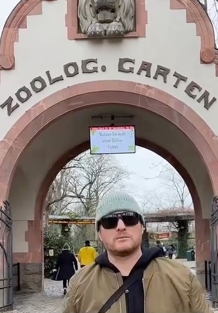 Jis nufilmavo juokingą trumpą vaizdo įrašą apie savo kelionę į Leipcigo zoologijos sodą ir paskelbė jį „Instagram“. Vaizdo įrašo pradžioje dainininkas išeina iš viešbučio ir praneša, kad dabar vyksta į zoologijos sodą ten susitikti su savo šeima. Kitoje sekoje jis stovi priešais zoologijos sodo įėjimą ir bando ištarti sutrumpinimą „Zoolog. sodas“.