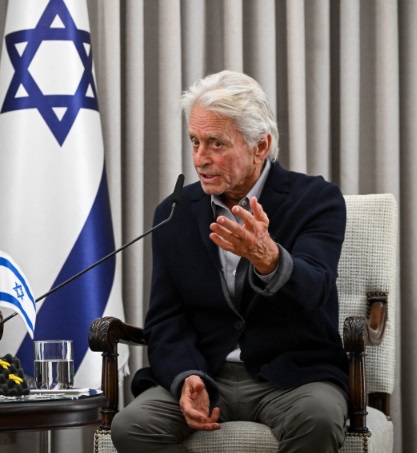 Vietoje kibuce Be’eri Douglas apžiūrėjo spalio 7d. sugriautus namus, kuriuose buvo nužudyta dar apie 100 žmonių, o 30 buvo paimti įkaitais. Aktorius išreiškė viltį, kad pagrobtieji „greitai sugrįš“. Izraelio prezidentas Isaac Herzog (63) per susitikimą įteikė JAV aktoriui geltonos spalvos smeigtuką, skirtą įkaitams Gazoje, ir vėrinį su užrašu „Mūsų širdys įkalintos Gazoje“.