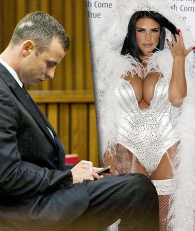 OSCAR PISTORIUS PER TEISMO PROCESĄ SIUNTĖ ŽINUTES KATIE PRICE