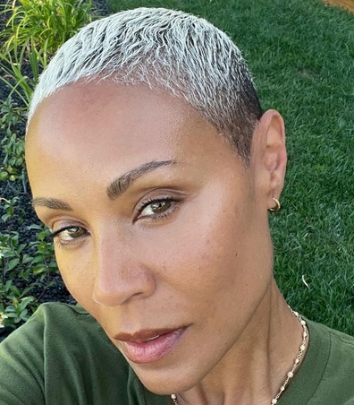 Los Angeles. Jada Pinkett Smith (51) džiaugiasi, kad jos plaukai vėl atauga. Holivudo žvaigždės Will Smith (54) žmona savo „Instagram“ puslapyje pasidalijo dviem asmenukėmis, kuriose matyti ji nuplikusi, o dabar su trumpais šviesintais plaukais.