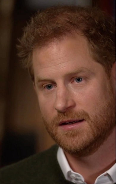 „60 Minutes“ yra seniausia (nuo 1968 m.) ir žiūrimiausia Amerikos televizijos naujienų programa. Tamsus megztinis, balti marškiniai – princas Harry atrodo rimtas, labai ryžtingas. Prieš milijoninę auditoriją jis atskleidžia intymiausias savo gyvenimo detales.