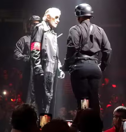 Gegužės mėnesį koncerte Berlyne Roger Waters vilkėjo ilgą juodą odinį paltą ir raudoną raištį. Tai buvo drabužiai, kurie, pasak tuometinio policijos atstovo, priminė SS pareigūno drabužius. Tai nebuvo pirmas kartas.